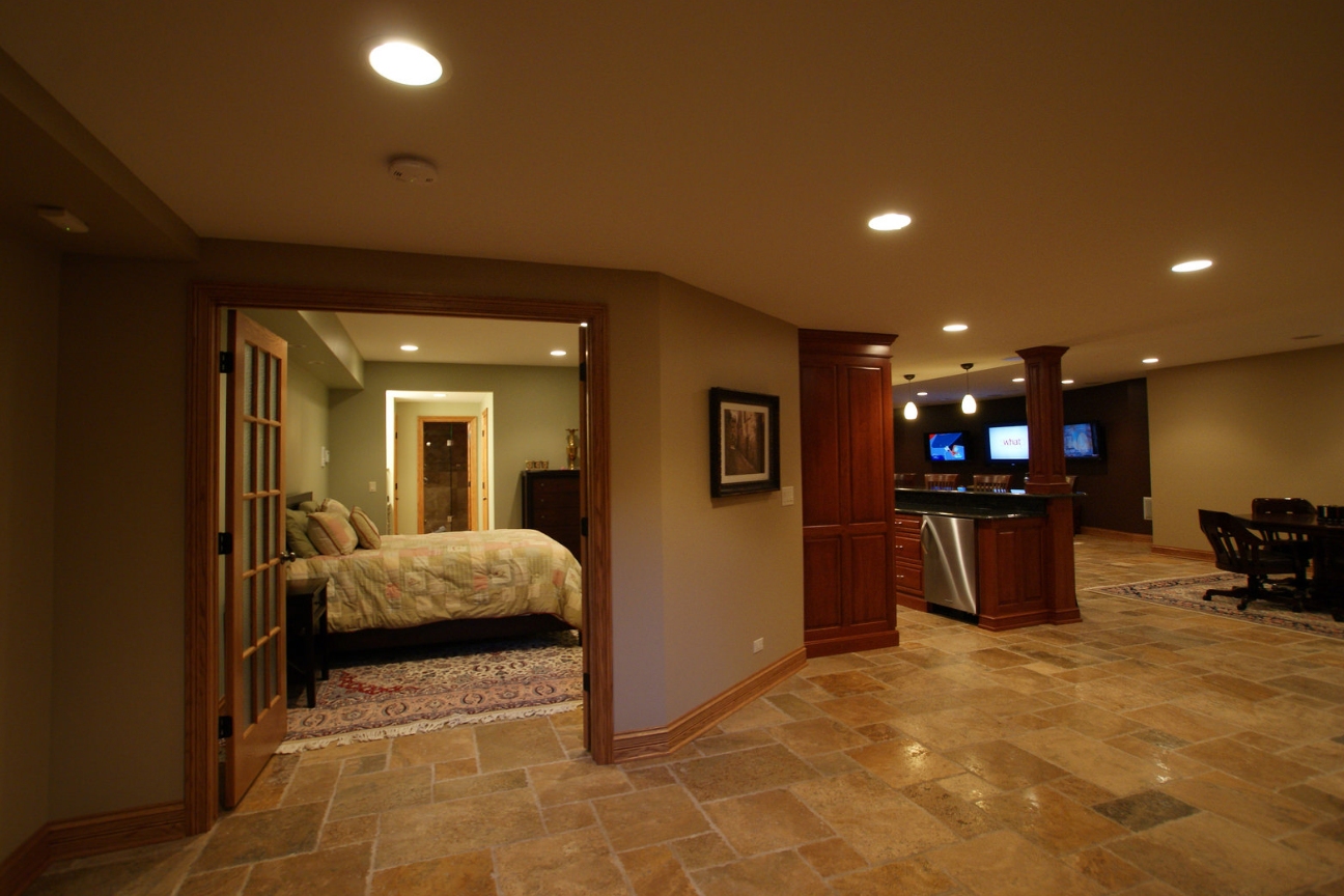 Add a full adjoining bathroom and kitchen to the basement bedroom